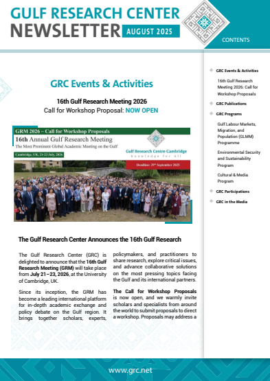 يسر مركز الخليج للأبحاث (GRC) دعوتكم للمشاركة ندوة البرنامج البحثي حول “التعاون بين دول مجلس التعاون الخليجي وأمريكا اللاتينية”، والتي ستُعقد …