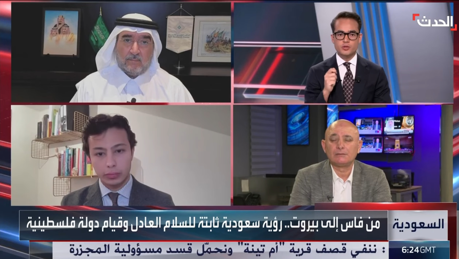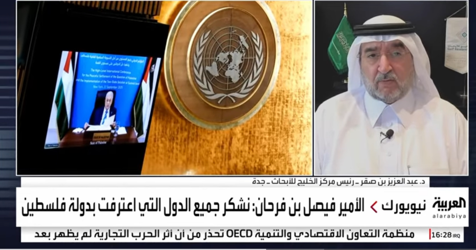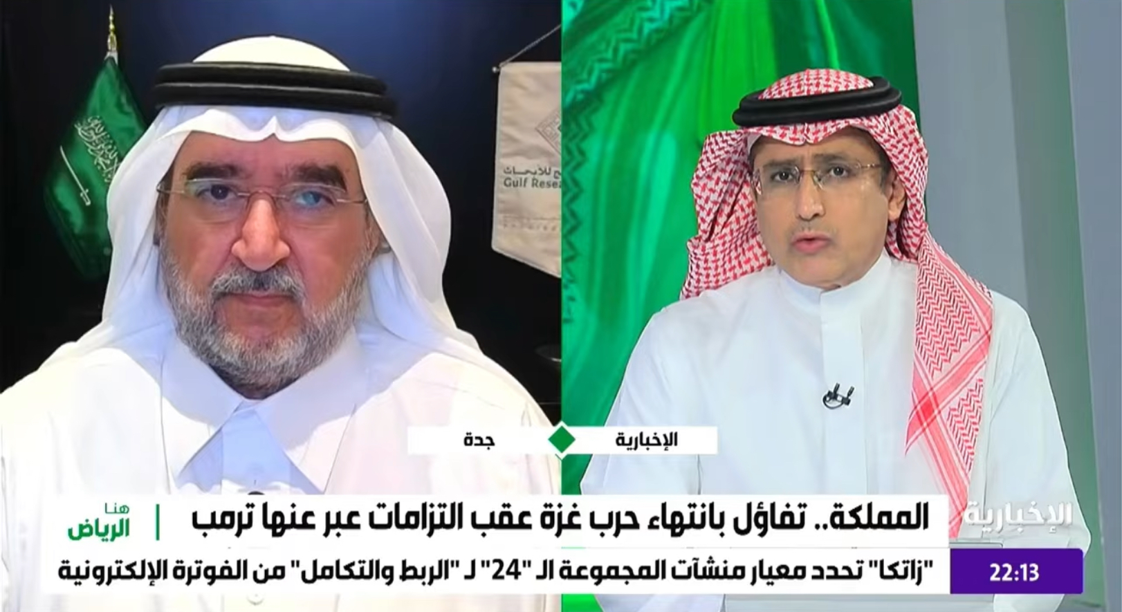 مشاركة رئيس مركز الخليج للأبحاثالدكتور عبدالعزيز بن صقر،في برنامج (هنا الرياض) على القناة الإخبارية، بحلقة بعنوان:“المملكة.. تفاؤل بانتهاء حرب غزة عقب …